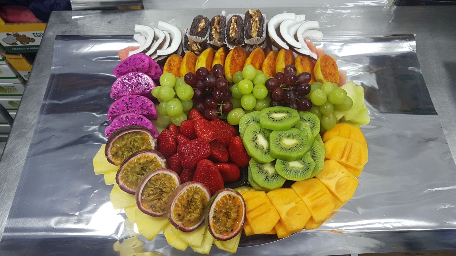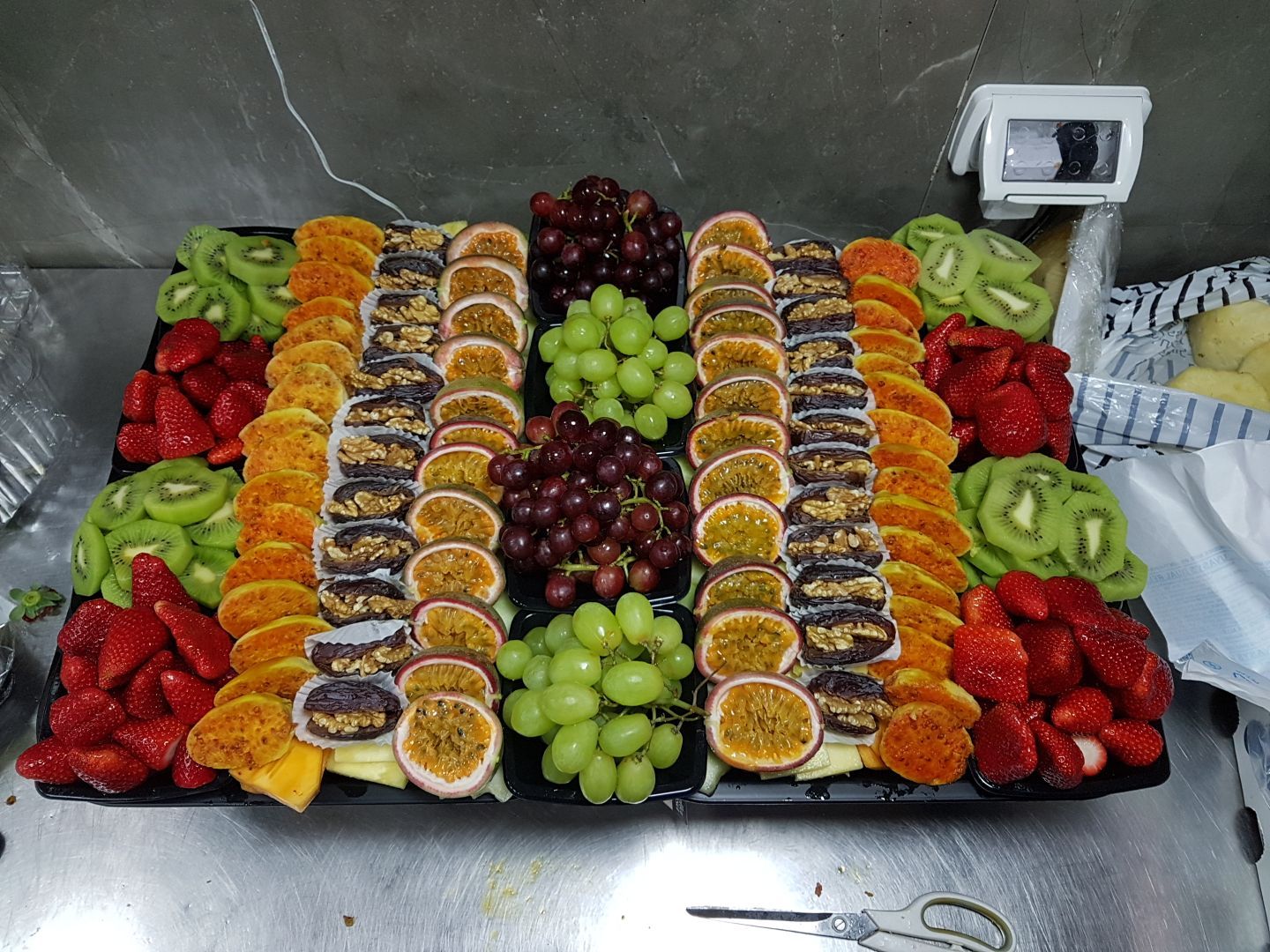 עיצוב מגשי פירות כולל, בין היתר, גם תפוחים ותפוזים. תפוחים מלאים במספר ויטמיני B ובייחוד בחומצה פולית. כמו כן, הם עשירים בוויטמינים A, C ו- E, כמו גם במספר נוגדי חמצון חזקים ובפקטין (סיבים מומסים). מחקרים אחרונים הראו, כי צריכת תפוחים מפחיתה את הסיכון לחלות בסוגי סרטן מסוימים, במיוחד בסרטן ריאות. כמו כן, צריכתם מפחיתה באופן משמעותי את הסיכון למחלות לב וכלי דם, סוכרת סוג 2 ואסטמה.